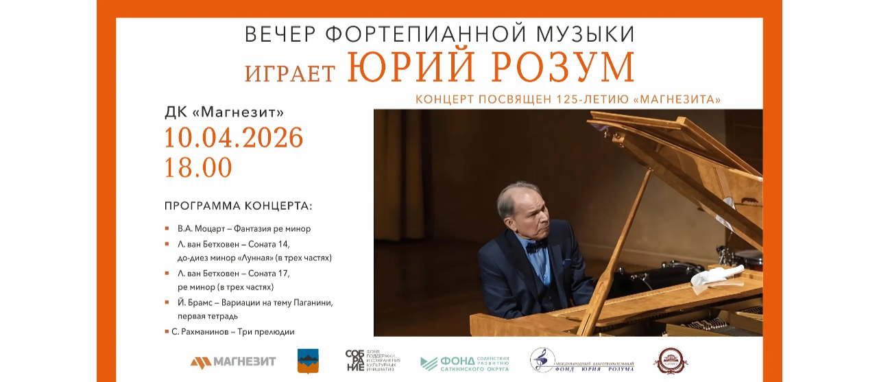 В Сатке состоится вечер фортепианной музыки с участием народного артиста РФ Юрия Розума